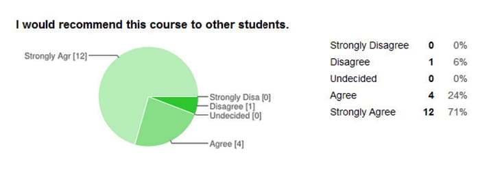 Completed on final day of the 1st semester this course was offered